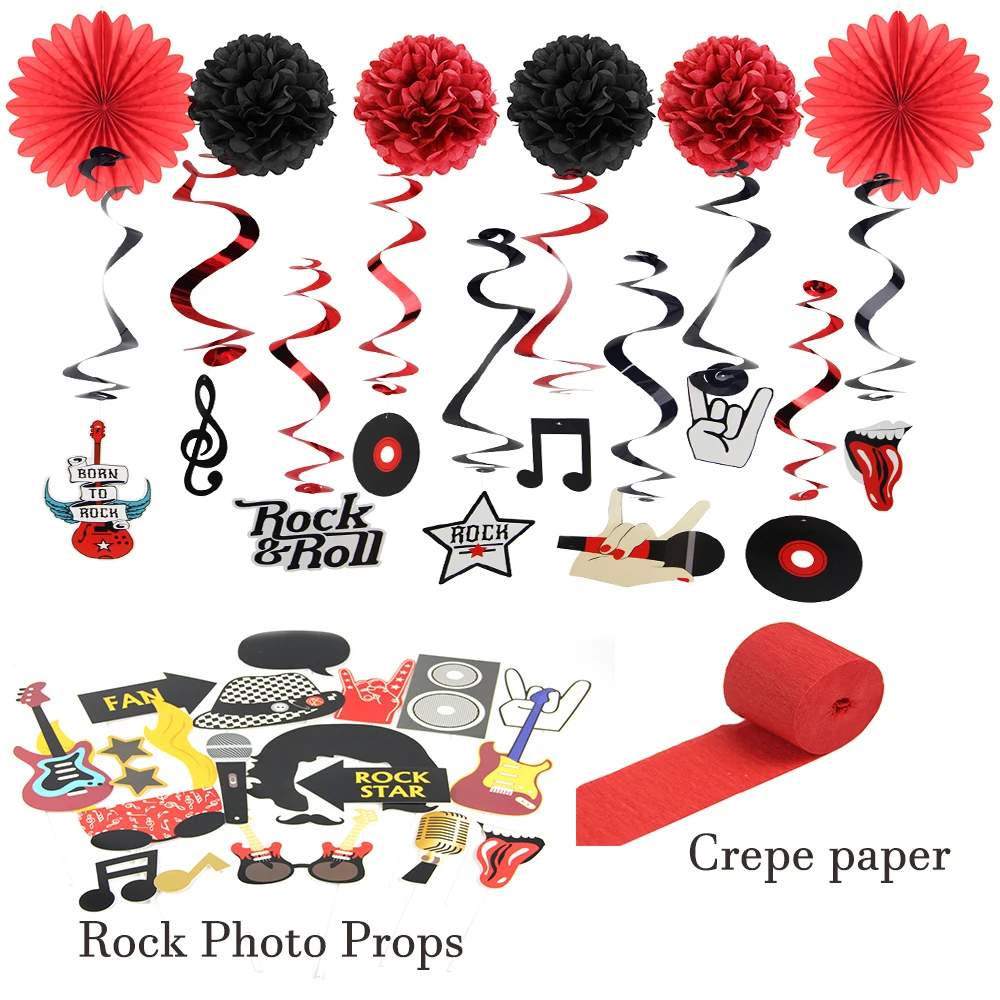Rock 'n' roll 50s record centerpiece product details: Rock and roll party decorations set born to rock glitter banner rock and roll hanging swirls rock star centerpiece sticks 1950's rock and roll party decorations music theme baby 1st birthday party supplies 50s 60s rock party favors record wall decor. We have new deals and discounts everyday so be sure to stop by, shop and save big! Fnn 54 guitar inflate rock n roll party decoration. 4.7 out of 5 stars 134.